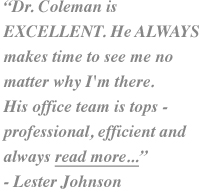 New patients, walk-ins, as well as same-day emergencies are always welcome. Dr. Brian Coleman has evening hours available on Tuesday and Wednesday. We also offer 24-hour emergency coverage.